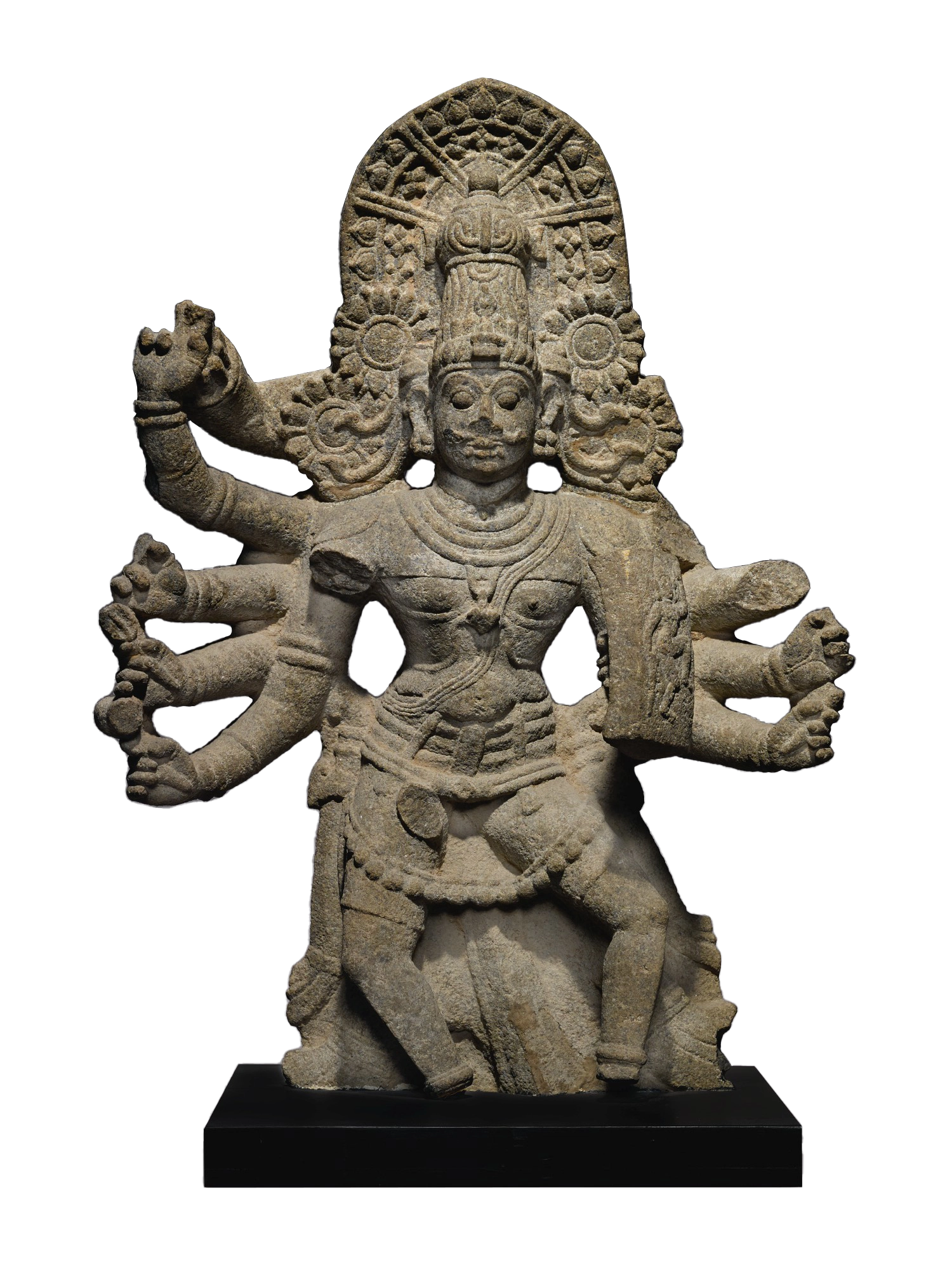 | 1 | वीरभद्र (Vīrabhadra) est l’aspect terrible de Śiva « prêt à la guerre », qu’il prit pour détruire le sacrifice de Dakṣa. Il a 1000 têtes, 1000 yeux, 1000 bras portant une massue et 1000 jambes ; il porte un liṅga dans les cheveux. Il est souvent représenté avec le bras droit tenant une épée dressée, le bras gauche portant la tête tranchée de Dakṣa, et derrière lui un loup attendant la tête à ronger. Il se transforma en śarabha pour mettre fin à l’incarnation de Narasiṃha. |